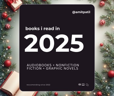 Discover Amit Patil’s yearly Book Reviews and complete reading lists covering fiction, non-fiction, graphic novels, and audiobooks, with insights from past years to the latest. Feel free to create your own collection from these recommendations.